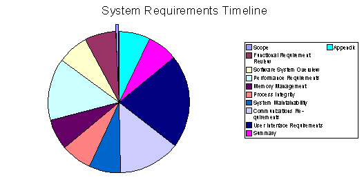 The requirements presented from the functional requirement is accommodated by the system requirement. The system requirement imposes additional structural and mechanical restrictions that provide a reliable, maintainable, as well as functional system. Memory management issues, inter-process communications, and device access are issues managed by the system requirement. Concepts involving debug and error handling are another requirement set declared by the system requirement. These concepts can be separated into sections of the system requirement and developed separately. A sample breakdown of a system requirement is presented as follows: