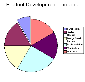Likewise the design specification, implementation, verification, and validation milestones can be separated into tasks declared by its work breakdown. A similar pie chart can be generated that represents the portion of time required to accomplish each task. The objective is to order the milestone tasks in such a manner as to incrementally construct the system that enhances parallel development efforts. By encouraging parallel task execution, the system will become assembled in less time (provided a finalized version of the functional requirements are available, and appropriate resource is allocated).
