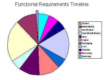 Initially, a functional requirement comes into existence. This functional requirement is developed with descriptive use models, input requirements, and desired results. Any information useful to develop the system requirement is requested. Characterization of the input data, algorithmic process requirements, and output specification are necessary to implement an appropriate system requirement. An outline for a functional requirement document follows: